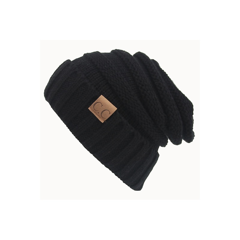 Highlights [Fabric] : Crafted from high-quality acrylic material, this knit beanie offers excellent warmth and comfort, making it ideal for the colder seasons. The soft texture ensures a cozy wearing experience, perfect for all-day use. [Fit] : The beanie features a ribbed pattern that provides a snug yet comfortable fit. Its slouchy style contributes to a contemporary and relaxed look, ensuring it complements a variety of casual outfits. [Design Highlights] : Adorned with a small leather patch displaying the initials "CC," this beanie adds a sophisticated touch to its design. The classic ribbed pattern enhances the overall aesthetic, offering a timeless appeal. [Occasions] : Ideal for a range of occasions including daily wear, street outings, holidays, and weekends. This versatile beanie suits various settings, providing both functionality and style, whether you're commuting or partaking in outdoor activities. [Size Notice] : Available in a one-size design, this beanie fits most head sizes comfortably, thanks to its inherent stretchability. Suitable for both men and women, it makes a stylish addition to any wardrobe.
