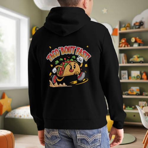 Kids Retro Funny TACO 'BOUT FAST MEXICAN FOOD Boys Girls Lightweight Kangaroo Pocket Fleece Hoodies 3