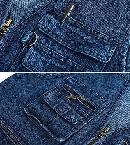 Spanye Men Denim Vest Outdoor Work Jacket Multi Pocket for Travel Photo Fishing Big & Tall 6