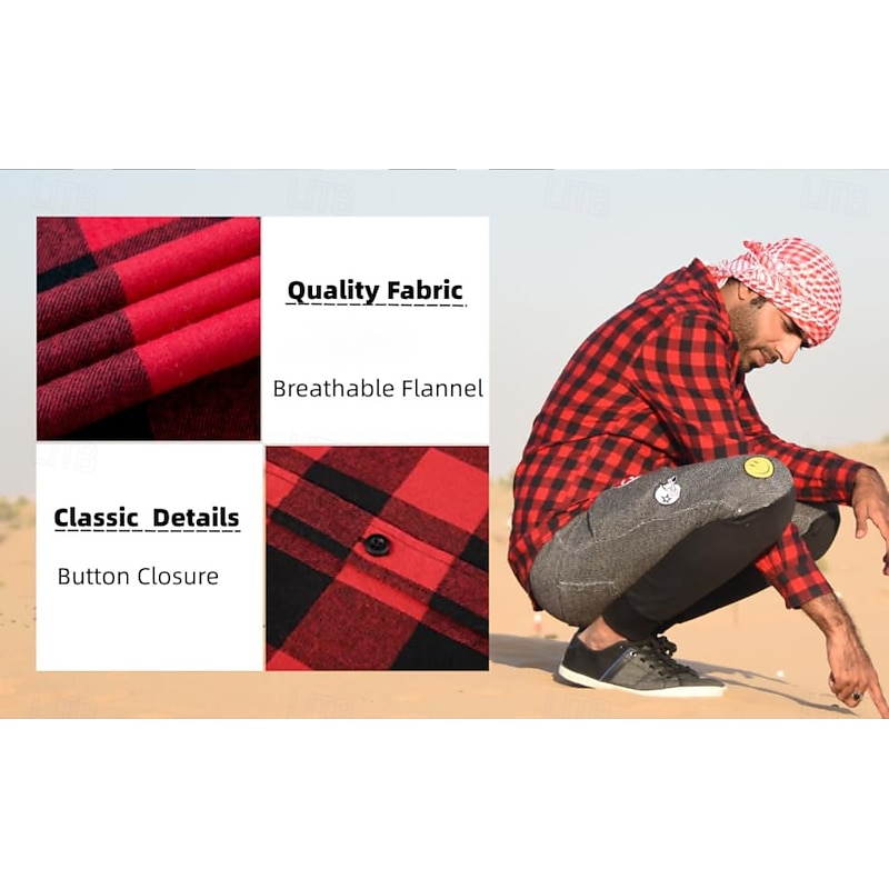 More information about Men's Shirt Flannel Shirt Overshirt Plaid Outdoor Street Yellow Red Dark Navy Green Long Sleeve Winter Spring & Fall Clothing Apparel