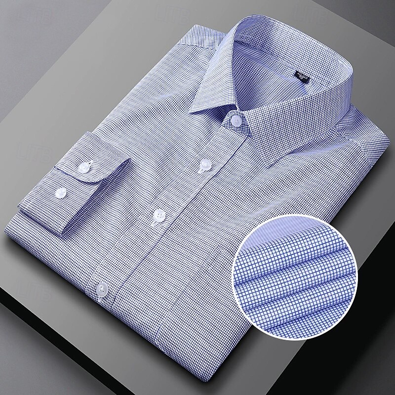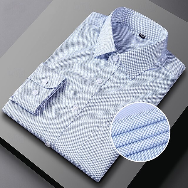 Men's Dress Shirt Non Iron Shirt Plaid Wedding Outdoor Light Blue Pink Blue Light Purple Long Sleeve Spread Collar Summer Spring Clothing Apparel 12