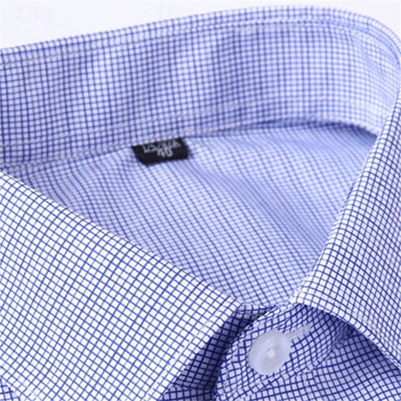 Men's Dress Shirt Non Iron Shirt Plaid Wedding Outdoor Light Blue Pink Blue Light Purple Long Sleeve Spread Collar Summer Spring Clothing Apparel 7