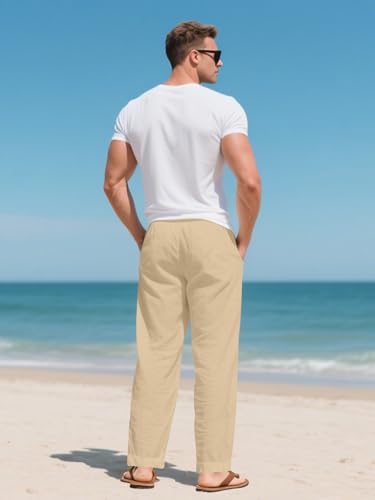 • Match:Versatile straight leg linen trousers complement mens beach outfits or casual looks. Available in classic white, khaki, and neutral shades – pairs effortlessly with polos, tees, or resort wear.