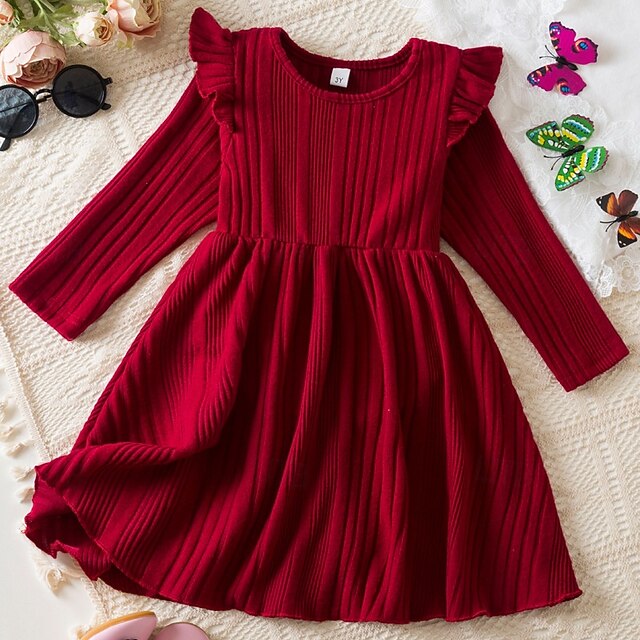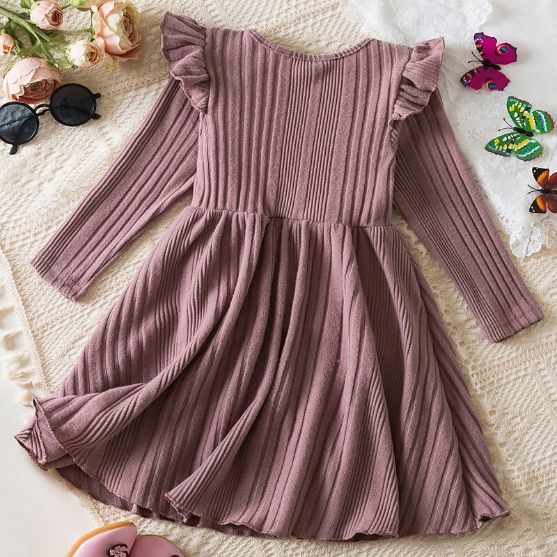 More information about Girls' 3D Solid Color Dress Long Sleeve Summer Vacation Daily Holiday Beautiful Sweet Little Kids(4-7ys) 4-7 Years Sweater Dress Casual Dress Knee-length Regular Fit