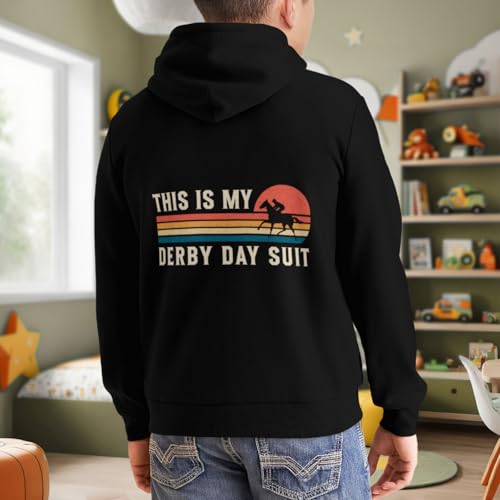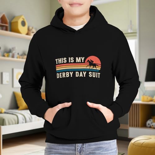 Kids Derby Day Horse Racing This Is My Derby Day Suit Boys Girls Lightweight Kangaroo Pocket Fleece Hoodies