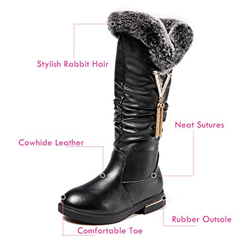 Girls Knee High Boots Leather Snow Bootie Girls Soft Faux Fur Lining Winter Boots with Side Zipper Kids Tall Riding Mid Calf Boots for Little Kid Big Kid 3