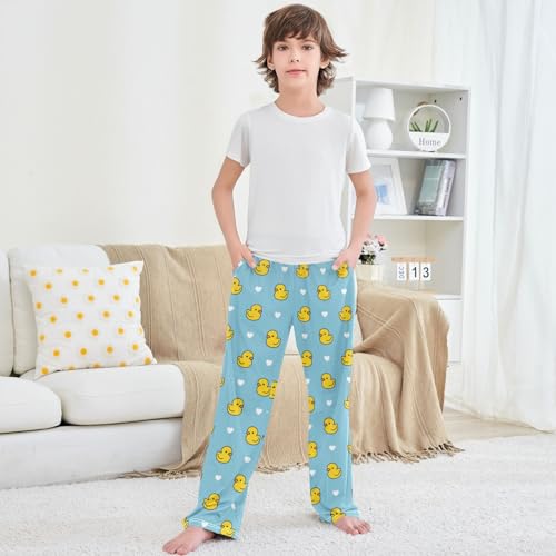 HOT ! Boy's Lounge Pants Yellow Duck White Hearts Kids Jogger Pants Elastic Waist Long Bottoms with Pockets 6-14 Years