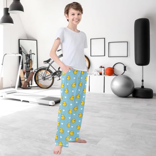 Boy's Lounge Pants Yellow Duck White Hearts Kids Jogger Pants Elastic Waist Long Bottoms with Pockets 6-14 Years 7