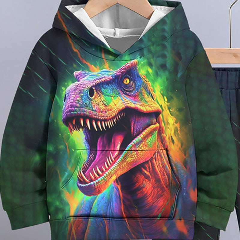 More information about Boys 3D Dinosaur Dragon Hoodie & Sweatpants Set Set Long Sleeve 3D Printing Fall Winter Active Fashion Cool Kids 3-12 Years Outdoor Vacation Street Regular Fit