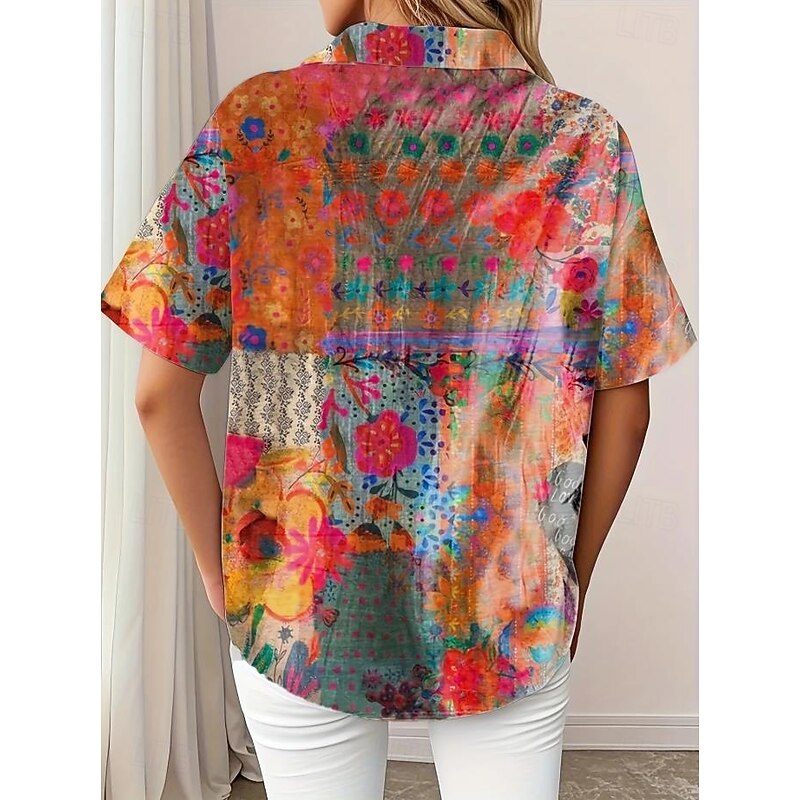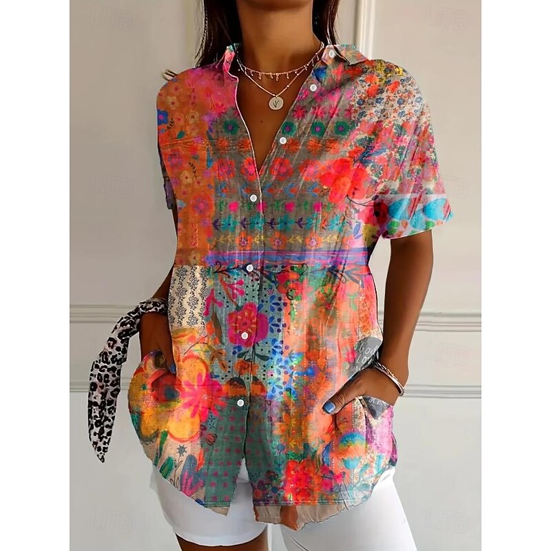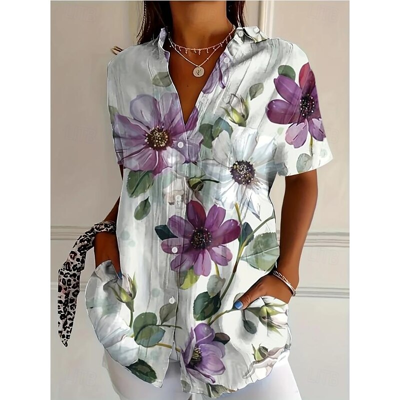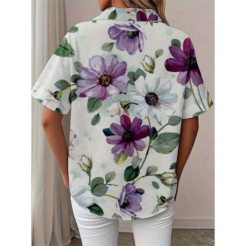 Women's Shirt Long Sleeve Button Down Blouse Floral Graphic Vintage Tropical Daily Short Sleeve Shirt Collar Regular Tops Daily Black Pink Royal Blue Blue Purple Summer Spring 25