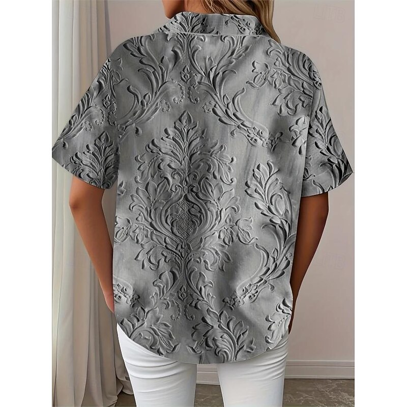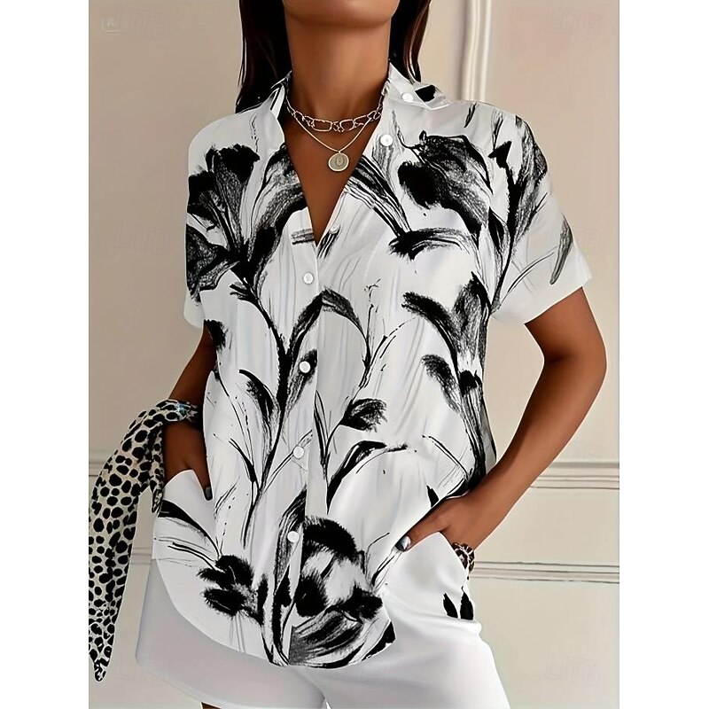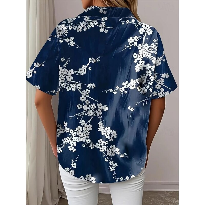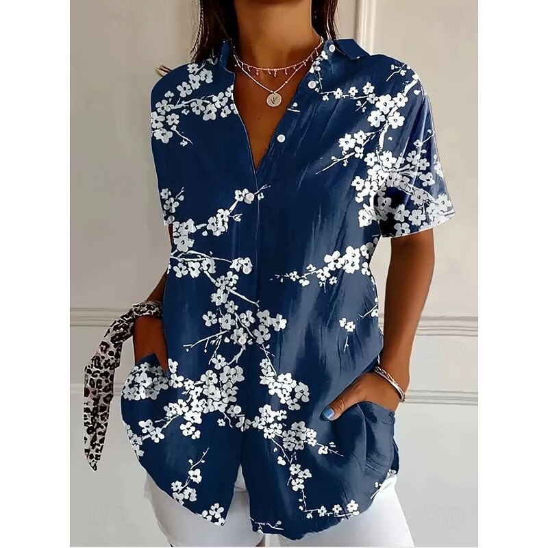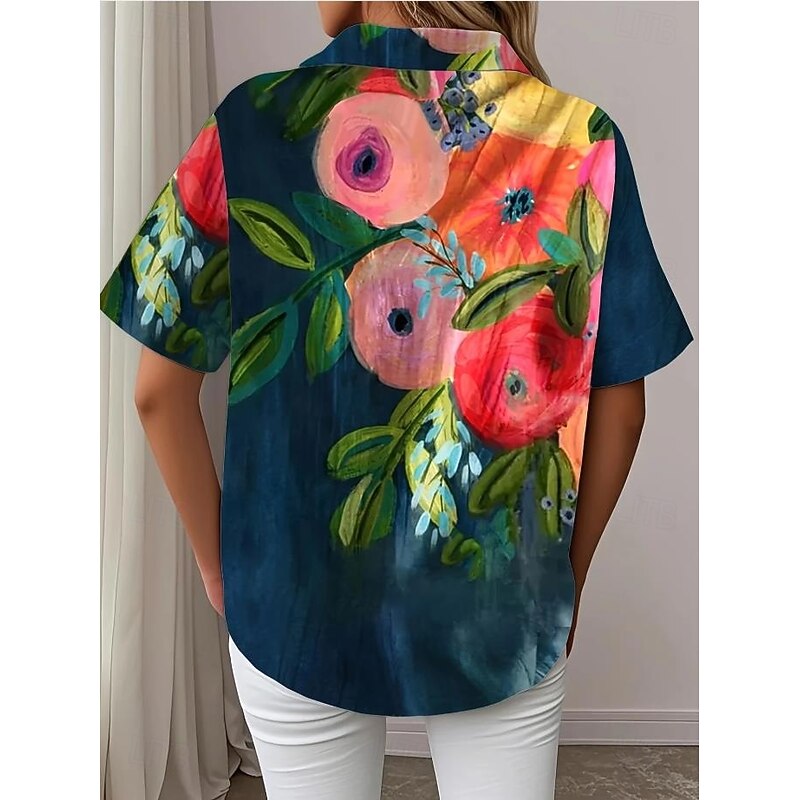 HOT ! Women's Shirt Long Sleeve Button Down Blouse Floral Graphic Vintage Tropical Daily Short Sleeve Shirt Collar Regular Tops Daily Black Pink Royal Blue Blue Purple Summer Spring