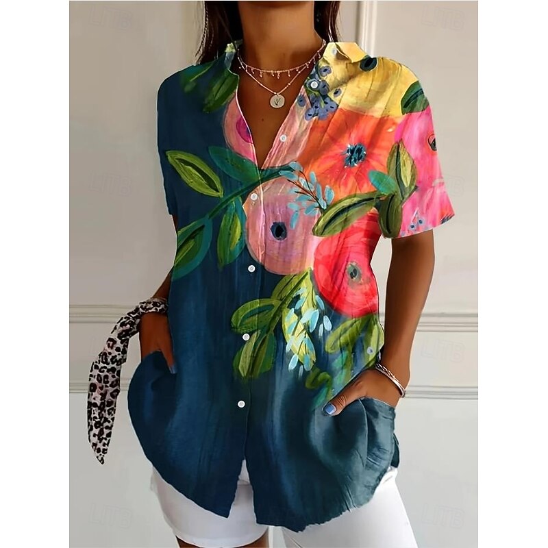 More information about Women's Shirt Long Sleeve Button Down Blouse Floral Graphic Vintage Tropical Daily Short Sleeve Shirt Collar Regular Tops Daily Black Pink Royal Blue Blue Purple Summer Spring