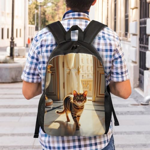 Comfort Fit Unisex Tabby Cat Walking Tiled Floor Room Backpack Durable Daily Commute Travel Adventures 16 Inch 2