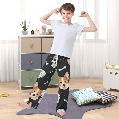 Skull and Corgi Dog Boys Long Pants Soft Trousers Elastic Waist Kids Lounge Bottoms with Pockets S-XL 6