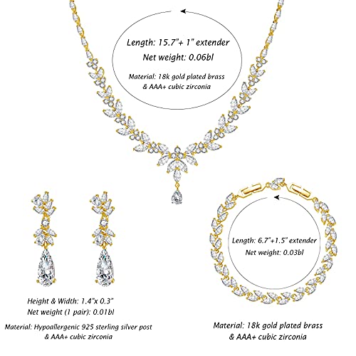 • Gorgeous Jewelry Set for Your Special Day: Radiant and luminous, this absolutely stunning bridal jewelry set! Exquisitely designed V-shaped wedding necklace formed together by shining cubic zirconia with a glamorous teardrop cut stone! This also comes with matching teardrop earrings and leaf type bracelet. Add an extra touch of romance for the bride, bridesmaids or the prom queen