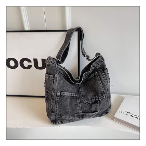 • 【Versatile 3-in-1 Functionality】Adjustable strap enables shoulder, crossbody, or tote carry. Metal zipper closure + detachable design offers flexibility as a jean messenger bag or denim hobo bag.