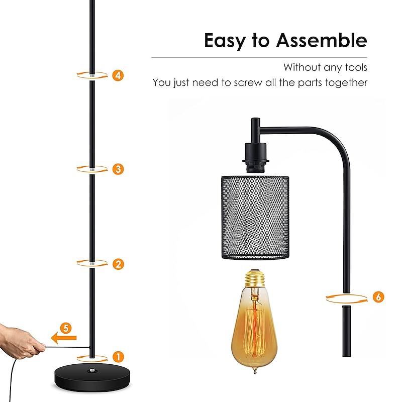 HOT ! Industrial Floor Lamp for Living Room, Standing Lamp with Hanging Iron Mesh Shade, 8W LED Bulb, Tall Standing Lamp with Foot Switch for Bedroom, Black
