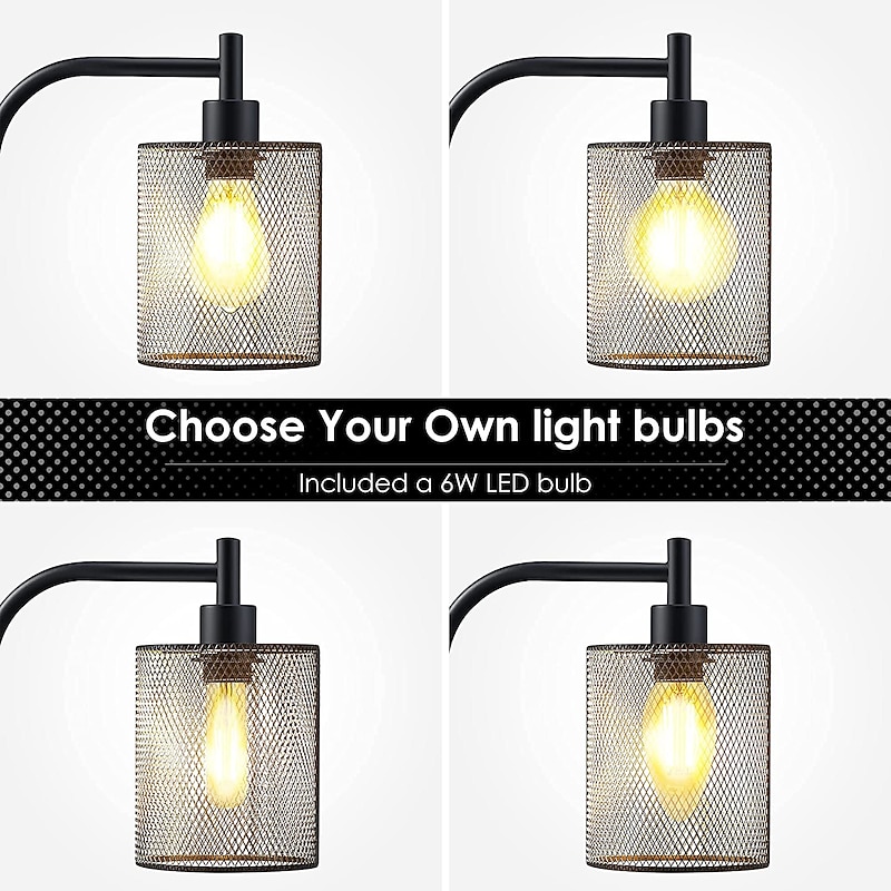 Industrial Floor Lamp for Living Room, Standing Lamp with Hanging Iron Mesh Shade, 8W LED Bulb, Tall Standing Lamp with Foot Switch for Bedroom, Black 6