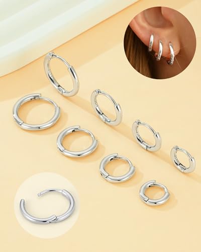• 4 Pairs Silver Hoop Huggies Earrings For Women Men : Classic Huggies Earrings make up an 4 pair earring set, with diameters of 6mm, 8mm, 10mm , and 12mm. - You can mix and match them according to your preferences and with other earrings. They can be worn perfectly in your main ear piercings or in the cartilage of your ears to complement other earrings, making you shine even more brightly. Warning: Not for users under 3 years old. Only for users aged 3+ years old.