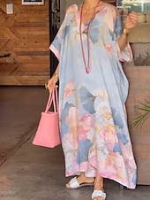 More information about Women's Long Dress Maxi Dress Floral Dress Print Dress Classic Modern Outdoor Vacation Daily Regular Fit Flower 3/4 Length Sleeve V Neck Pink Blue Orange Summer