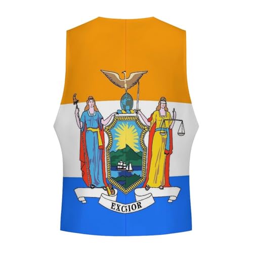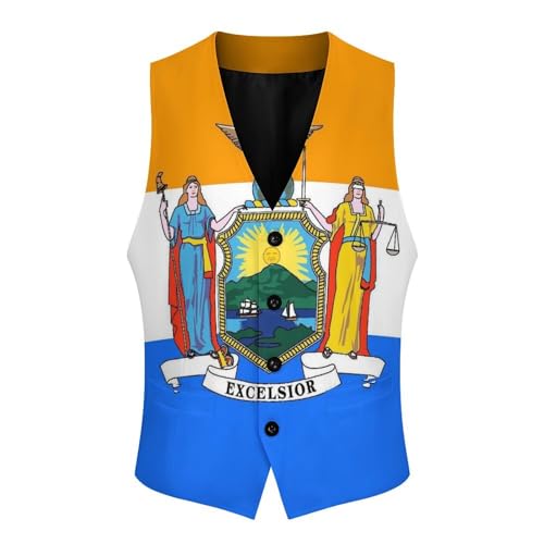 New York State Flag Suit Vest for Men Slim Fit Tuxedo Waistcoat Button Down V Neck Business Dress Coat 6