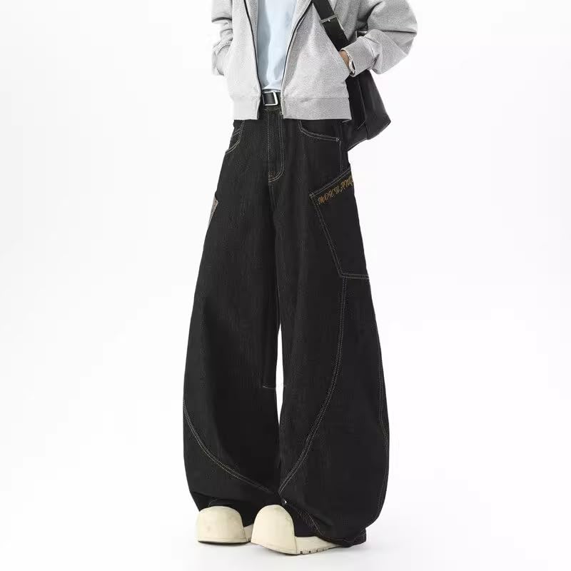 More information about Men's American Retro Color Block Denim Jeans Wide Leg