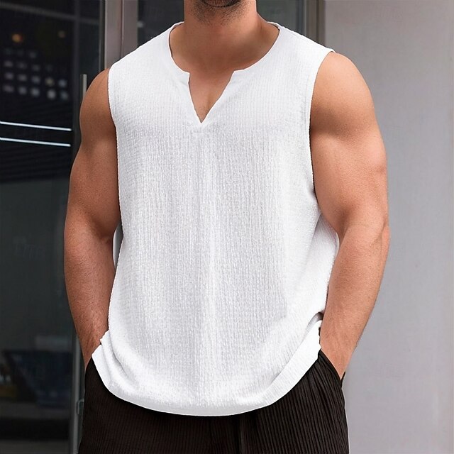 Men's T Shirt Short Sleeve V Neck Summer Plain Textured Fashion Classic Casual Plain Street Casual Sports White Red Navy Blue Top Tee for Men 11