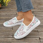 Highlights [Fabric] Crafted from transparent mesh material, these women's sneakers feature intricate floral embroidery in soft pastels like mint green and white, creating a delicate and feminine aesthetic. The sturdy white rubber sole offers durability and grip, ensuring these shoes are perfect for everyday wear. [Silhouette] These sneakers have a casual slip-on design with a flat heel for comfort and style. The elastic side panels guarantee a snug fit, making them an ideal choice for versatile daily outings. [Design Highlights] The exclusive blend of transparent mesh adorned with floral embroidery gives these sneakers a chic and modern look. Their platform style aligns with the 2024 trend, making them both fashionable and functional. [Occasions] Perfect for casual daily use during Spring and Fall, these sneakers add a chic element to any outfit. Whether you’re heading out for a day of errands or a casual meet-up with friends, these shoes provide the ideal mix of comfort and style. [Size Range] Available in a range of sizes including US6 to US9.5-10, these sneakers accommodate various foot sizes, ensuring a comfortable fit for everyone. Perfect for everyday use. supreme materials and excellent craftsmanship ensure long-lasting durability.