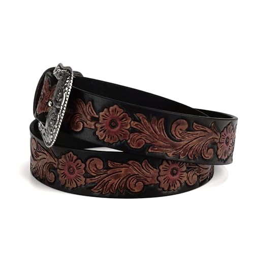 ARIAT Women's Floral Design Leather Belt w/Antique Silver Buckle 6