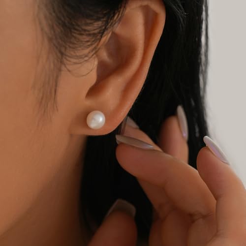 Small Pearl Earrings,Handpicked Freshwater Pearl 6~10mm,Sterling Silver Stud Hypoallergenic Earrings For Women,Perfect For Gift 5