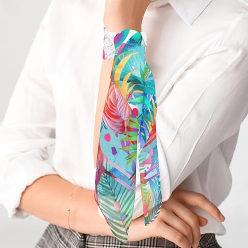 Tropical Flamingos Square Head Scarf for Women Flamingo Palm Tree Hair Scarf Fashion Lightweight Silk Like Scarves Neckerchief Hair Wrap Neck Scarf 23.6''x23.6'' 6