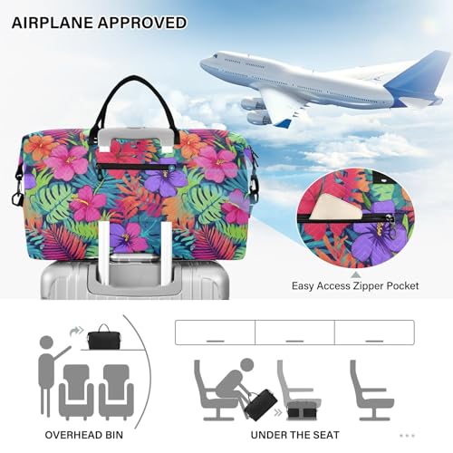 Green Palm Leaves Hibiscus Flower Blossom Large Travel Duffle Bag Weekender Overnight Bags Gym Yoga Bag for Women Men with Toiletry Bag 6