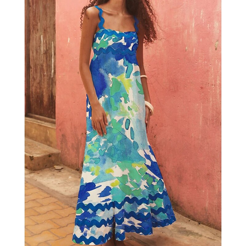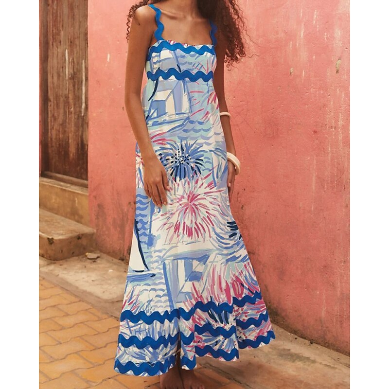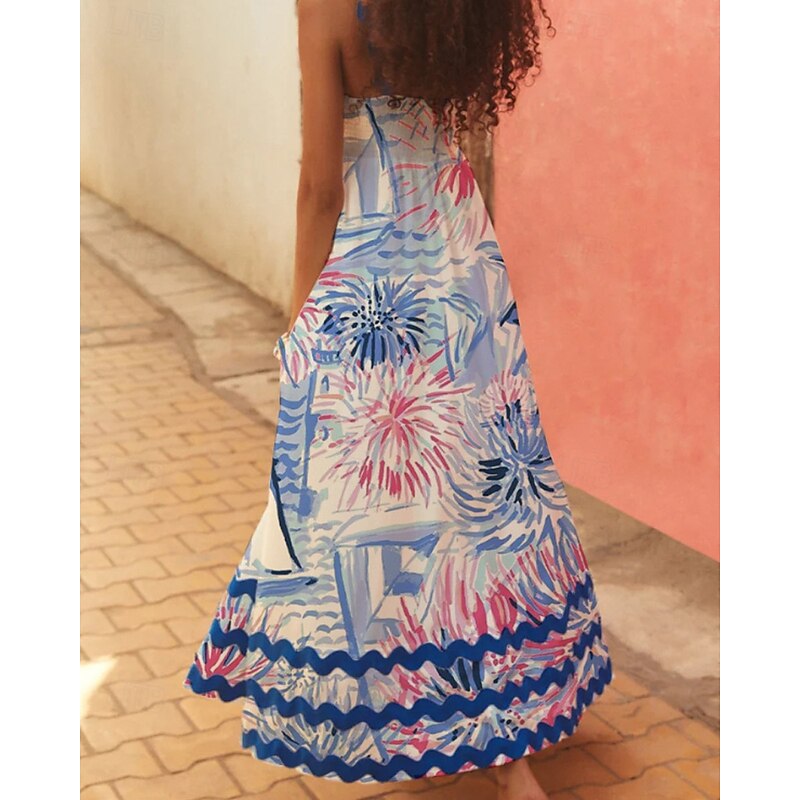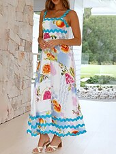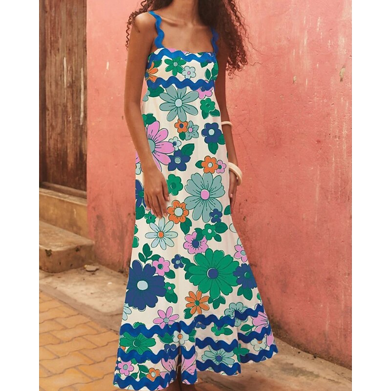 More information about Women's Midi Dress Floral Dress Slip Dress Print Dress Classic Modern Outdoor Vacation Holiday Regular Fit Flower Sleeveless Spaghetti Strap White Navy Blue Royal Blue Blue Summer