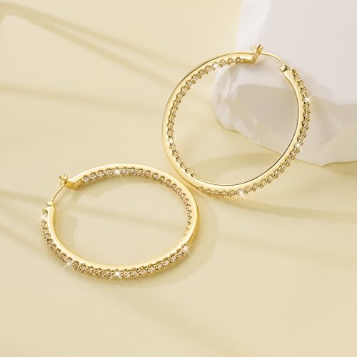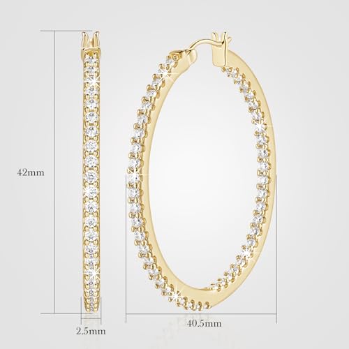 • 【Optimal Size】The 42mm diameter ensures these cubic zirconia hoop earrings for women are noticeable yet refined, and the 2.5mm thickness keeps them light and comfortable. Perfectly balanced, these gold hoop earrings 14k gold earrings hoops are designed to be both attention-grabbing and comfortably wearable