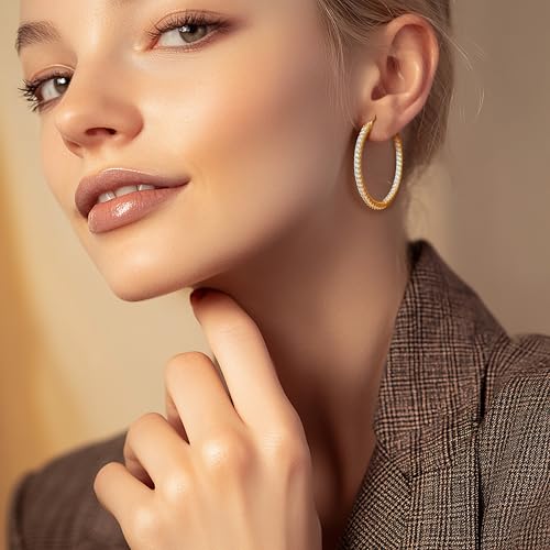 NICRET 14K Gold Hoop Earrings for Women Hoop Earrings Dual Diamond Hoops Earring Large Golden Hoops Earring 40 * 2mm 5