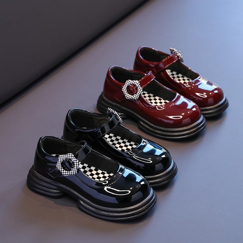 Girls' Mary Jane Shoes Strap Girls School Flats Leather Girl Loafers School Uniform Non-Slip Sole 6