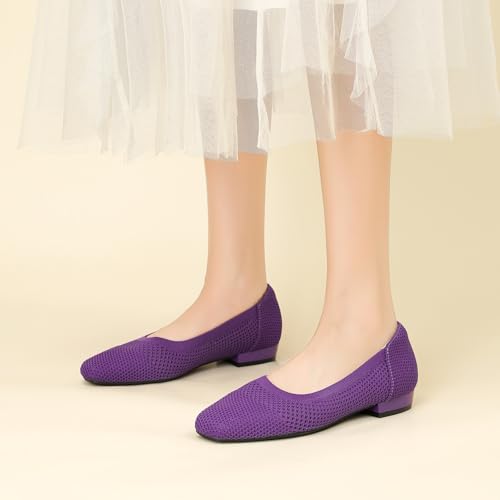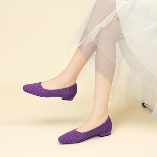 Women's Square Toe Low Heels Knit Comfortable Dressy Slip On Ballet 5