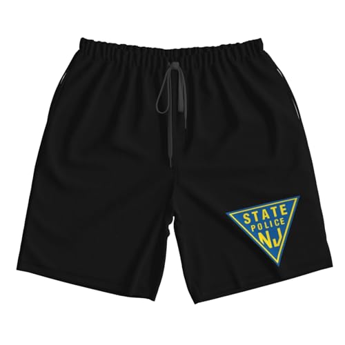 New Jersey State Police Men's Beach Shorts Quick Dry Swim Trunks with Pockets Mesh Lining 7