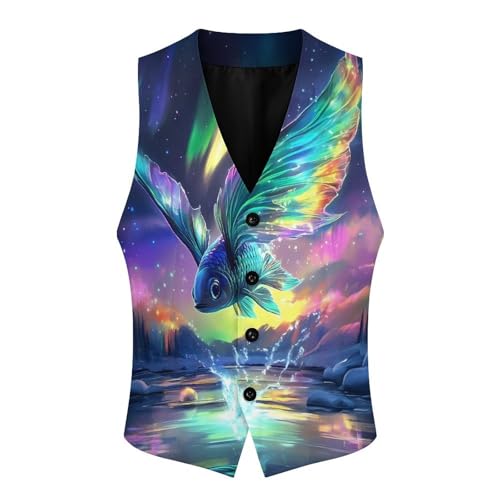 Flying Fish Northern Lights Men's Suit Vest Slim Fit Business Dress Party Pattern Waistcoat Vest Top 1