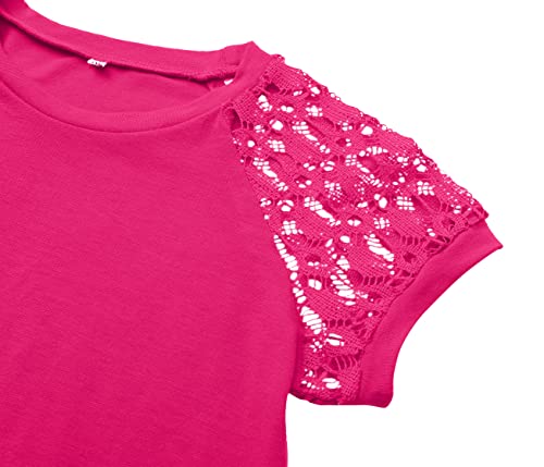 Yoklass Girls Short Sleeve Shirts Kids Casual Summer Lace Blouse 5-14 Years 5