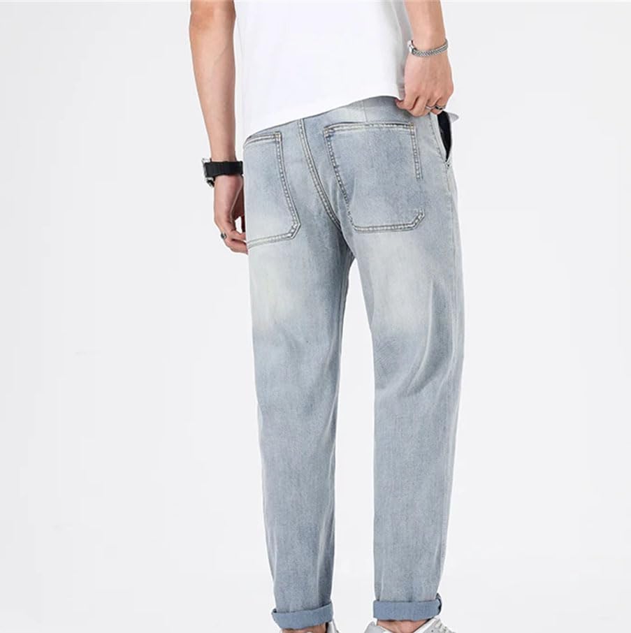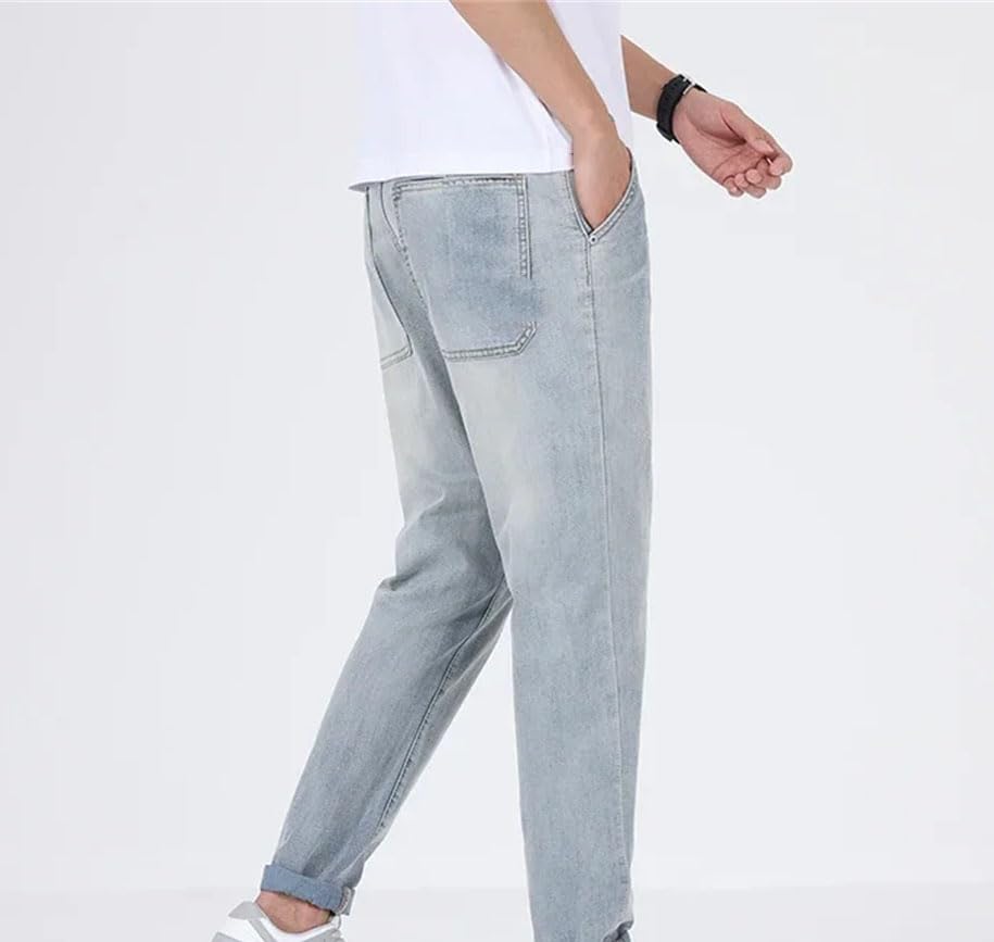 HOT ! Men’S Slim Fit Stretch Jeans Mid Waist Straight Leg Denim Pants Casual Zipper Fly Lightweight Jeans