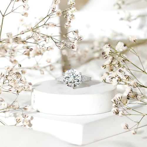 Certified Moissanite 10mm Round Engagement Ring, D-Vs1 Quality, Moissanite 4 Carat Ring in Silver - Ideal For Gift 5