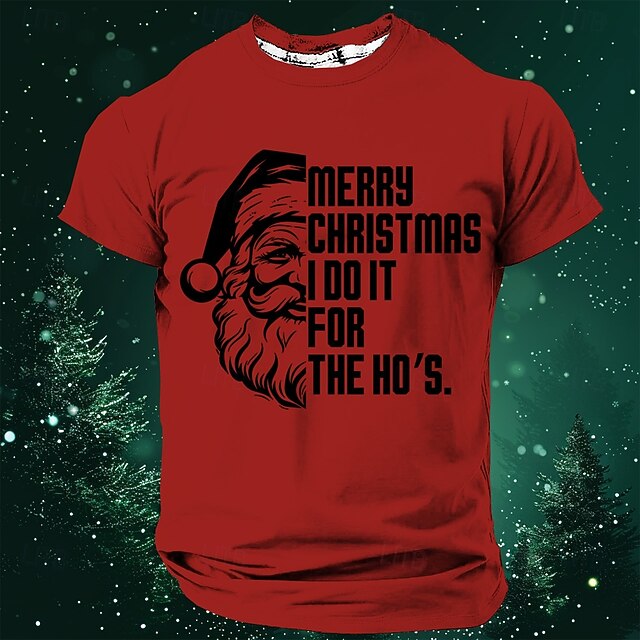 More information about Christmas Men's Santa Claus T Shirt Short Sleeve T shirt 3D Print Crew Neck Shirt Retro Vintage Casual Street Style Christmas Sports Outdoor Holiday White Red Blue Spring & Summer Clothing Apparel S