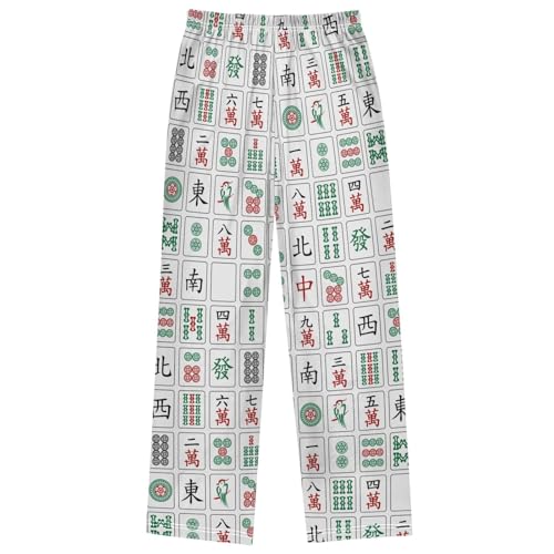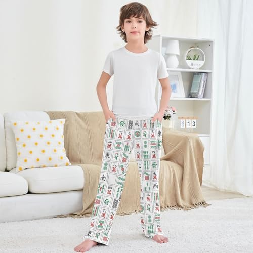 HOT ! Boy's Pants Mahjong Tiles on White Jogger Pants Elastic Waist Long Bottoms Trousers with Pockets 6-14 Years