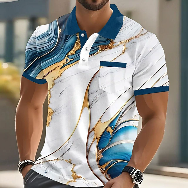 Men's Graphic Polo Short Sleeve Polo Shirts Collared Shirts Business Casual Outdoor Athleisure Daily Wear Pocket 3D Print Buttons Summer Red Blue Green 16