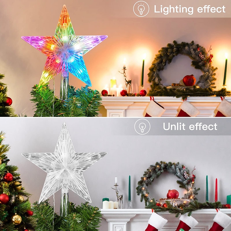 Christmas Tree Star Topper Lights LED Night Light Topper Christmas Tree Ornaments LED For Home Xmas New Year Party Decor Holiday Lighting AA Battery Power 11