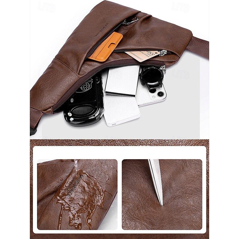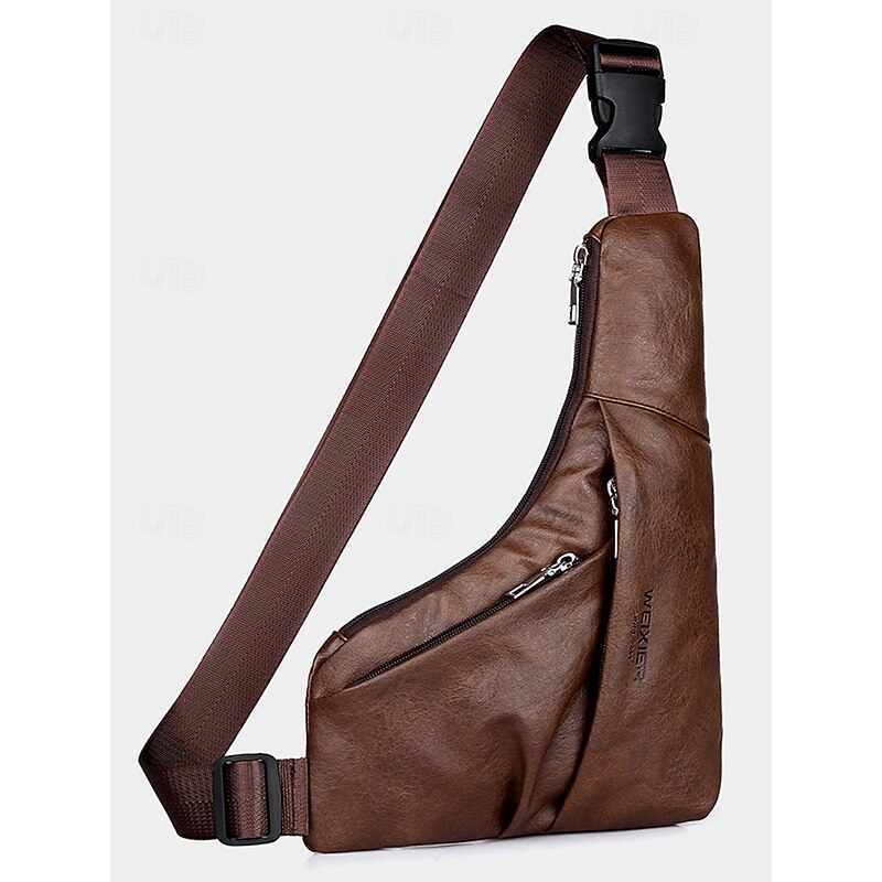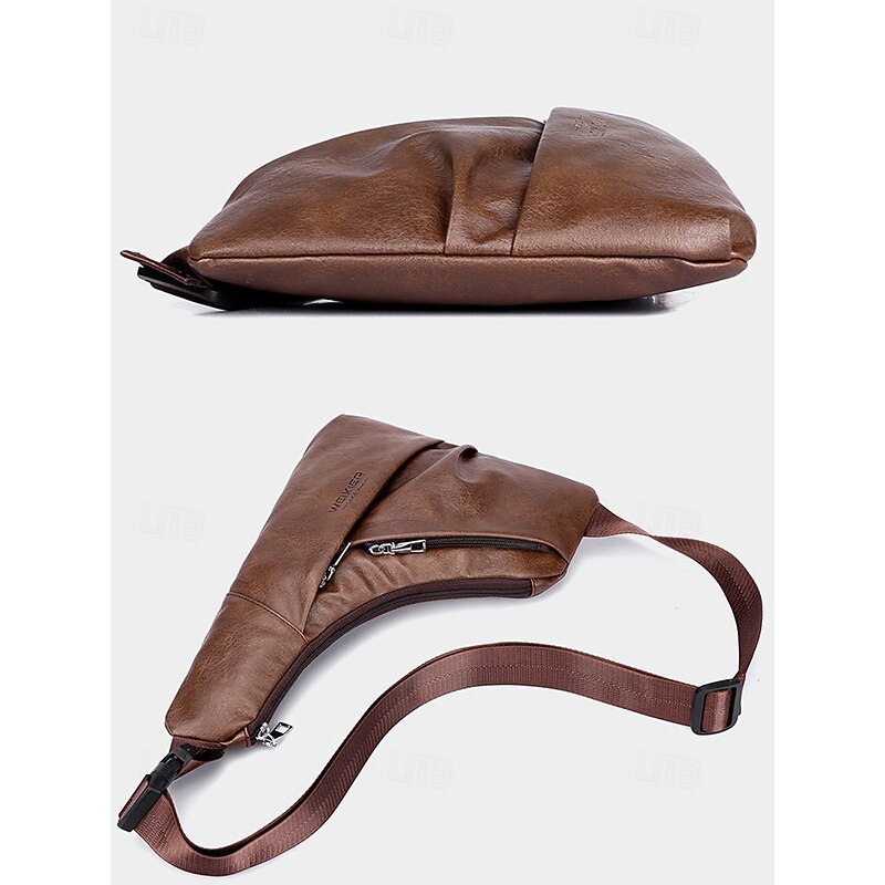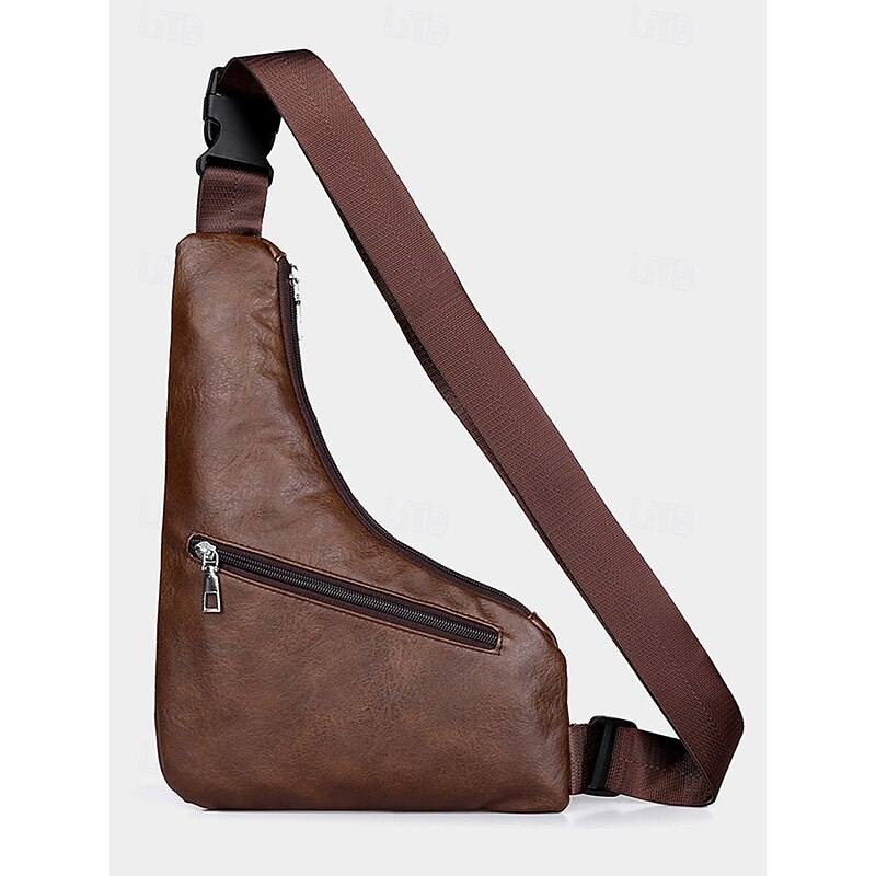 $14.99 - Men's Brown Faux Leather Crossbody Sling Bag – Vintage Chest Shoulder Pack with Adjustable Strap and Multiple Zipper Pockets for Travel, Outdoor and Daily Casual Wear 2025. Shop for cheap Men's Bags online? Buy at lightinthebox.com on sale today!