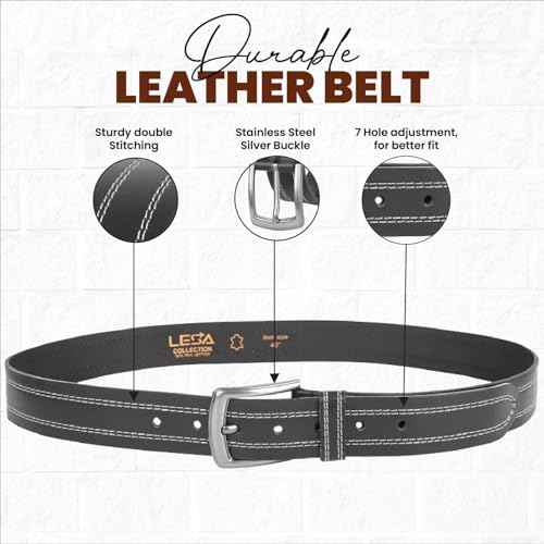 Berreri Men’s Genuine Leather Belt Men with Strong Metal Buckle - Durable Double Stitching Mens Leather Belt 4