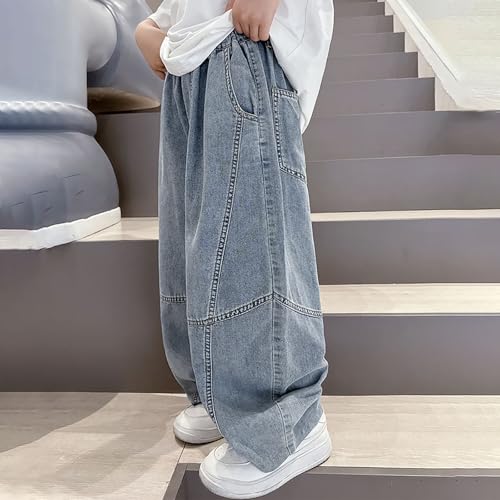 Boys Baggy Jeans 2025 Straight Wide Leg Casual Elastic Waisttd Y2k Stretchy Relaxed Fit Denim Pants with Pockets 6