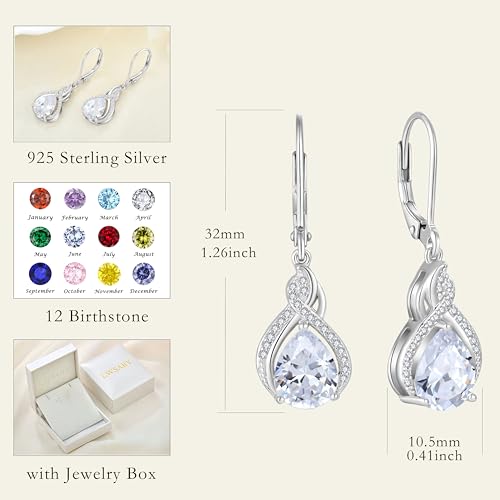 Infinity Teardrop Earrings 925 Sterling Silver Dangle Drop Leverback Earrings Pear Shaped Birthstone Jewelry Gifts for Women 5